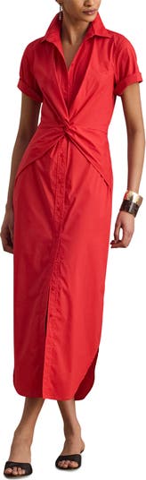 Twist Front Cotton Blend Shirtdress