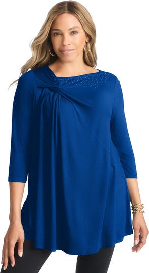 This tunic features a chic twist detail at the neckline that elevates your everyday look.Wear it to work or a work event paired with our shimmery trousers and pumps.