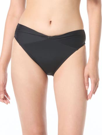 For a versatile swim bottom that elongates your legs, add this to cart asap. Topical inspired solids offer the option to mix and match with various swim tops. A twisted waistband adds a glamorous detail.