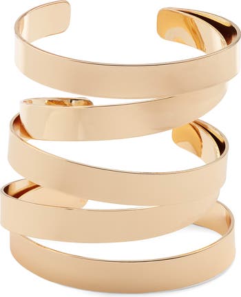 Add a playful twist to your stack with this brassy cuff bracelet sculpted into a vortex of dimensional charm.