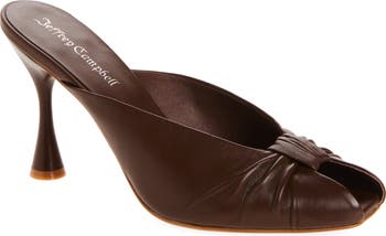 A knotted topline and snipped peep toe bring stunning dimension to a leather slide sandal lofted by a cylindrical heel.