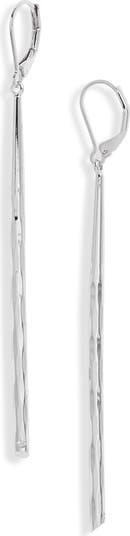 Sleek and sculptural, these linear earrings feature a refined twisted-bar design that catches the light with subtle dimension. Minimalist and contemporary, they offer a clean, elongated silhouette that elevates everything from tailored looks to evening wear.