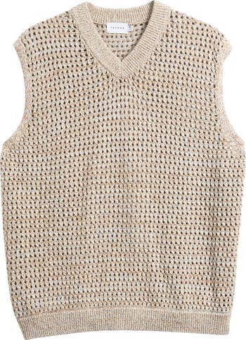 A twisted open-stitch design lends a breezy element to this all-cotton sweater-vest that blends laid-back style with soft sophistication.
