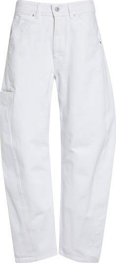 The label's minimalist, practical designs inspired by Japanese culture and workwear inform these jeans made from rigid, heavyweight bleached denim with twisted side seams that give the style its curved shape.