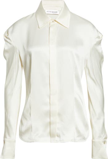 Twisted Shoulder Satin Button-Up Shirt