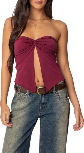 EDIKTED Twisted Split Front Tube Top, Alternate, color, Burgundy