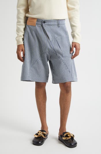 Twisted for attention and designed to offer a new spin on comfort, these low-slung cotton shorts feature an angled front zipper framed by a spade pocket and a leather logo patch relocated from the back. Side-seam pockets provide traditional function, while the voluminous profile hits below the knees to bring ample room for new perspectives.