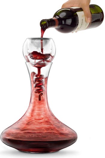 - Lead-free crystal decanter and blown glass double-wall aerator with spiral aeration tube.
