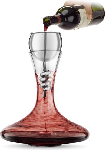 • Simply insert the aerator into the decanter, then pour your wine through and serve.