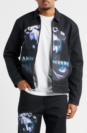 A ghostly graphic works its magic on this easy-fitting shirt-jacket cut from breathable cotton and fastened with a zip closure for a sporty stance.
