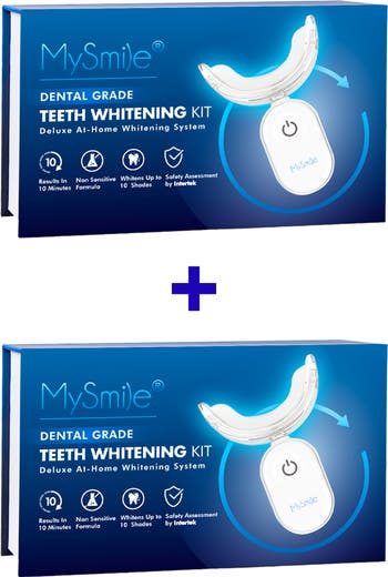 This bundle includes 2 MySmile Advanced Kits. Each kit whitens fast with non‑sensitive gel and a 28X LED light, removing deep stains for quick, professional results.