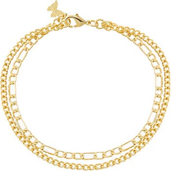 The Adina Eden Two In One Chunky Double Chain Bracelet is a bold and stylish accessory, crafted from durable brass and plated in radiant 14K gold. This bracelet features two chunky, intertwined chains in a single piece, creating a layered look with ease and sophistication. Measuring 7" in length and secured with a sturdy lobster lock, it provides a comfortable and secure fit, perfect for making a statement on its own or pairing with other pieces for a stacked look. This bracelet brings a modern edge to any jewelry collection, adding a touch of luxury to any outfit.