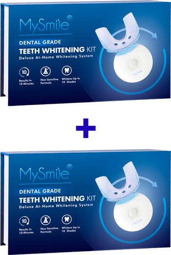 MySmile Original Whitening Kit bundle of 2 removes stains in 10 minutes with gentle vegan gel and 5‑LED light, delivering up to 10 shades whiter teeth in 7 days.