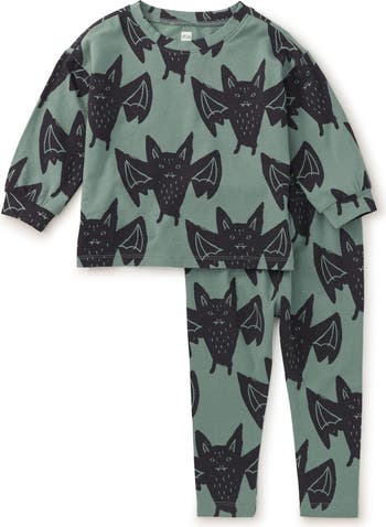 Playful comfort meets standout style in this two-piece baby set. Featuring a roomy drop-shoulder top and stretchy full-length leggings, this outfit is crafted for all-day ease and wiggle-friendly fun. The bat-themed hand-drawn print adds a bold, graphic touch. The top's relaxed fit and soft jersey blend ensure cozy movement, while the fitted leggings with an elastic waistband offer a secure, flexible fit perfect for playtime and beyond.