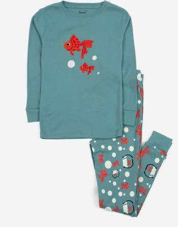 Leveret Two-Piece Cotton Printed Matching Family Pajamas, Playful Graphics, Main, color, Fish Tank