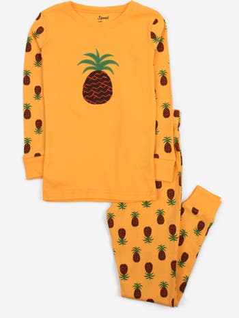 These Baby Two-Piece Cotton Printed Matching Family Pajamas feature imaginative graphic prints that make bedtime more colorful. Made from soft, breathable 100% cotton, the snug-fit silhouette meets children’s sleepwear safety standards and includes a long-sleeve crewneck top with elastic-waist pants finished with ribbed cuffs at the wrists and ankles. Tagless labels provide irritation-free comfort, and the fabric’s durability makes it easy to care for with simple machine washing. Offered in prints like Army Helicopter, Avocado, Fish Tank, Moon, and Pineapple, these Matching Family Pajamas add personality to family photos and cozy nights in.