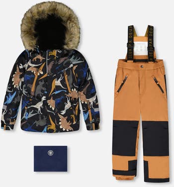 Waterproof, breathable, and insulated for cold protection down to -30°C (-22°F), our two-piece PLAY ski suit is designed for maximum comfort, warmth, and performance in the snow. This winter snowsuit features a fleece-lined jacket with a detachable and adjustable hood, articulated sleeves for improved range of motion, elastic cuffs, a snow skirt, expandable sleeves so you can adjust the length as the child grows, and a protective wind flap and chin guard. The pants are constructed with Cordura-reinforced panels for long-lasting durability, articulated knees, adjustable and removable suspender straps, ankle snow guards, and zippered pockets to hold ski passes and other essentials.