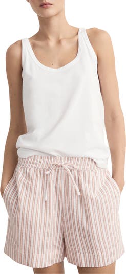 An elastic drawstring waist completes the cozy fit of these striped pajama shorts paired with a solid tank top cut for comfort from soft, breathable cotton.