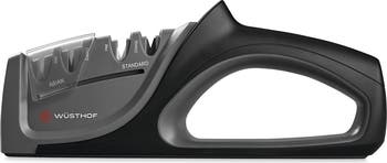 I've had my Wusthof chef's knife for about 30 years and never sharpened it or properly honed it. Ran it through the sharpener side of the 2 stage once and the honing side 4-5 times and now the knife is sharp. Cut through an eggplant with skin. Couldn't do that before. The 2 stage is really easy to use.