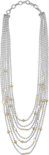 Designed to seamlessly elevate your day and evening looks, this gleaming multichain necklace features a sterling-silver ball chain punctuated with diminutive charms that range from an openwork silhouettes to 18-karat gold baubles of Caviar beading.