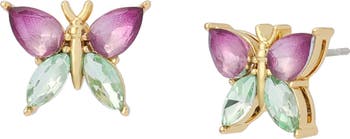 Two Tone Crystal Butterfly Stud Earrings
