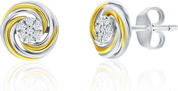 Beautiful swirls of sterling silver and sparkling crystals make these earrings a must-have addition to any outfit! The two tone design adds a touch of sophistication, while the lead and nickel-free metal ensures safe wear. These earrings are 8x8mm in size and stamped with 925 for quality assurance. Elevate your style with these stunning earrings today!
