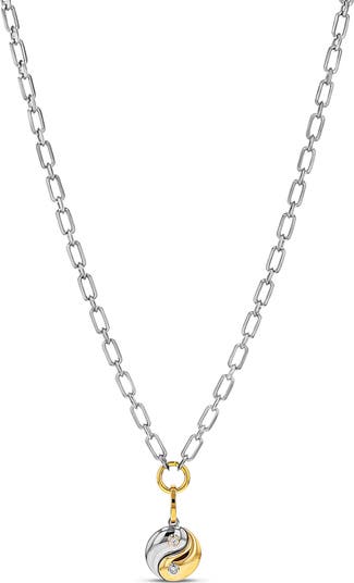 Two Tone Diamond Bezel Yin Yang Pendant Necklace
