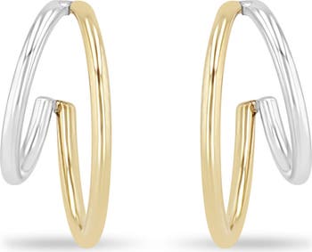 Gold and white-gold hoops add complementary shine to these two-tone hoops that add modern style to your lobes.