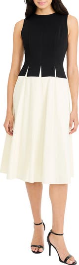 Elegant princess seams and an eye-catching two-tone design bring a standout look to this desk-to-dinner midi dress made of breathable stretch-enhanced cotton.