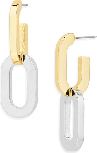 A two-tone finish enhances the striking shine of oval-link drop earrings that bring a touch of glamour to any look.