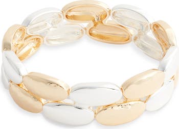 Light up your look with this double-row stretch bracelet traced by pebble-shaped links boasting a glossy two-tone finish.