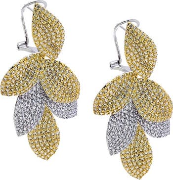 Two Tone Pave Dangling Petal Drop Stud Earring