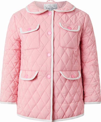 Get your little girl ready for spring breezy days with our adorable Two-tone Quilted Jacket. With a sweet peter pan collar and four front flap pockets, this lightweight jacket is as functional as it is stylish. Fully lined to keep her warm, it's the perfect outerwear for cooler spring and summer days.