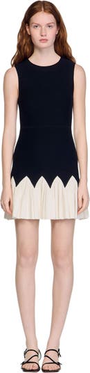 Sleeveless short knit dress with a round neck and a contrasting ruffled hem.