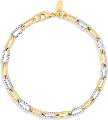 Smooth and textured paper-clip links gleam in two tones on this stack-ready chain bracelet hand polished to perfection.