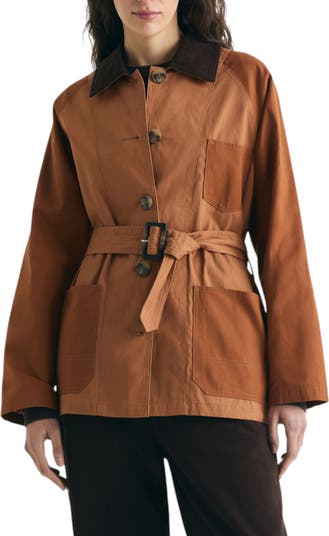 Wax Coat.Regular fit. Classic contrasting collar. Closure by buttons and belt. Long sleeves and front patch pockets