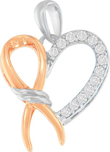 Cherish the years you have spent together by presenting her this lovely pendant. Fashioned in the heart shape, the masterpiece features a ribbon accent, which is plated with rose gold. Further, the half side of the heart is made using sterling silver and is finely polished. It is elegantly adorned with 0.2 karats shimmering round cut diamonds that are arranged in a four prong setting. The classy piece also makes a perfect accessory for everyday wear.