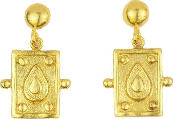 These chic gold drop earringngs remind us of vintage cards. Handmade by our artisans in Istanbul, these gold plated earringngs are perfect for adding a touch of romance and character to your looks.