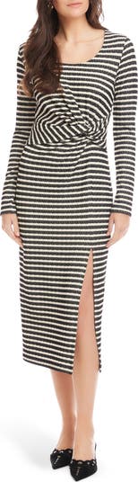 A waistline twist textures and shapes this soft stretch-kissed midi made with a leg-baring side slit.