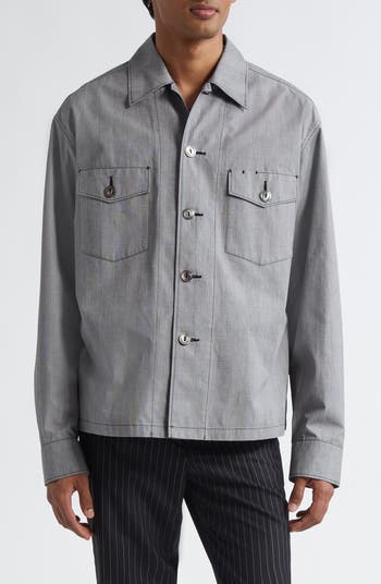 A study in contrasts, this plaid cotton jacket from the spring ’25 collection layers poetic nostalgia with a rebellious spark. High-contrast topstitching frames every line, cat-eye buttons wink at retro glamour and a clever penholder at the chest proves artistry is always within reach.