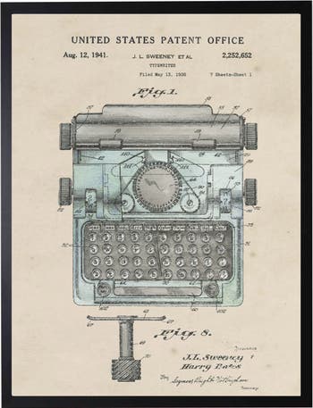 Typewriter Patent in Black Frame