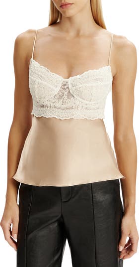 Satin and lace divide the bodice and unite in creating lingerie-inspired allure for this camisole set with delicate straps and styled to gracefully flare at the hips.