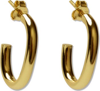 A U-shape brings modern edge to these sterling silver hoop earrings plated in polished 18-karat gold.