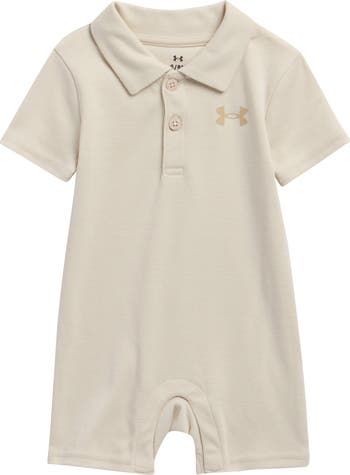 Longer-staple combed cotton helps bring cozy, durable softness to a romper that wicks away sweat and dries quickly to help your little one stay comfortable when the temperatures rise. A classic polo collar keeps the look smart and photo-ready, while easy-on/easy-changing snaps between the legs make it a favorite for parents and caretakers.