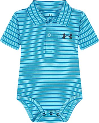 A subtly textured knit brings stretchy softness to a bodysuit that wicks away sweat and dries quickly to help your little one stay comfortable when the temperatures rise. A classic polo collar keeps the look smart and photo-ready, while easy-on/easy-changing snaps between the legs make it a favorite for parents and caretakers.