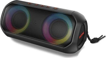 Ion iSP156 Uber Boom Portable Bluetooth Speaker - IP66 All Weather - 40W (Black) ION AUDIO UBER™ BOOM - ALL-WEATHER BLUETOOTH®?-ENABLED WIRELESS SPEAKER WITH LIGHTS AND STEREO-LINK ™ The Uber™ Boom wireless speaker with LED lights is designed to enhance your personal listening experience with its impressive features. The speaker lights move to the beat of your music adding an extra element of fun and the speaker’s long lasting battery life of 10 hours provides ample power. Loaded with features, the Uber Boom has ION’s Bass Boost™ feature that allows you to kick up the bass for maximum sound impact at the touch of a button. Additionally, the ability to pair the speaker with another Uber™ Boom speaker for a more immersive sound or use it on its own give you options for how you want to enjoy your music. The fact that it is iP66 water-resistant and sand proof, means you can have peace of mind knowing that accidental spills or splashes won’t damage the speaker and you don’t need to worry if it gets sandy at the beach! The new ION Sound Control™ App allows you to customize the audio and lighting of the Uber™ Boom speaker to your liking. With Bluetooth 5.0 streaming, you can listen and control your music wirelessly from your device. The speaker boasts a high-power 40-watt sound system with dual 2.25” full-range speakers and 2 passive radiators, which delivers lifelike sound quality and will fill a room with sound. Uber™ Boom portable speaker also features Wireless Stereo Link™, which enables you to connect an additional Uber™ Boom speaker for an even more immersive audio experience. The rechargeable 10-hour battery in the speaker allows for extended use, enabling you to enjoy premium quality audio for an extended period without the need for frequent recharging. The speaker also features SD card playback. Conveniently play material recorded on other devices. The AUX inp