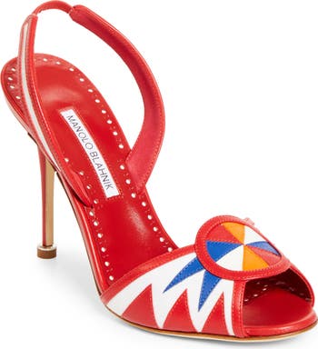 For spring '26, the label is inspired by the Mexican city of Romita, bringing its vibrant energy to the mesmerising design of this peep-toe slingback sandal featuring a geometric motif in a blend of linen and lambskin leather.