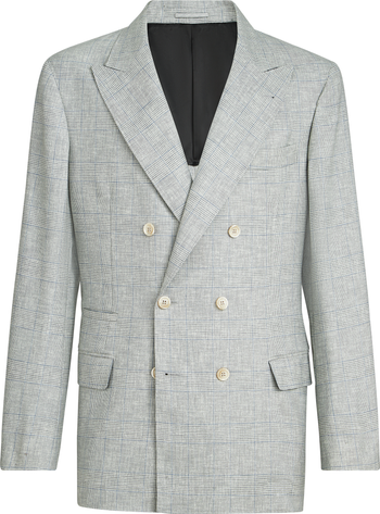 - 6 horn button closurePeak lapelCuffs have four horn buttons and functional buttonholesWelt pockets with flap, ticket pocket and chest pocketCupro half liningTwo interior pockets with button closure and pen holderDouble back ventDrop 7