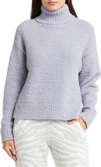 Cozy up and lounge around in this fuzzy turtleneck knit with ribbed trim.