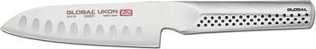 The Global UKON 5" Santoku Knife features a hollow ground blade that blends traditional Japanese craftsmanship with modern design. Ideal for slicing, dicing, and mincing, this knife offers a superior cutting experience with its friction-reducing hollow ground indentations. Crafted from high-quality CROMOVA 18 stainless steel, it promises durability and long-lasting sharpness. The ergonomic handle ensures a comfortable, secure grip, making it a versatile addition for any cooking enthusiast.